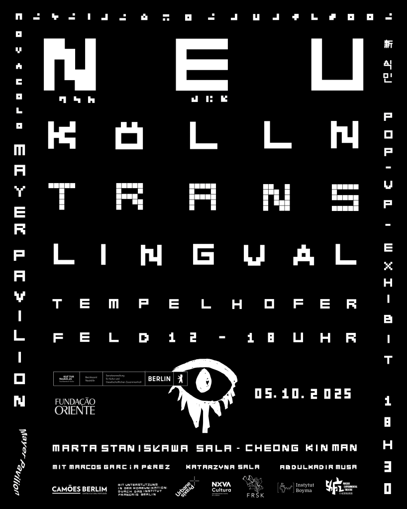 „Neukölln Trans-lingual“, eine Reihe öffentlicher Happenings mit begleitender Pop-up-Ausstellung im Berliner Bezirk Neukölln, feiert die lebendige sprachliche Vielfalt des Bezirks. Das Projekt lädt die Öffentlichkeit dazu ein, Gestik, Klang und transkulturelle Sprache durch kollektives Sprachenlernen und -erfindung, translinguale Poesie und performative Kommunikation zu erkunden.