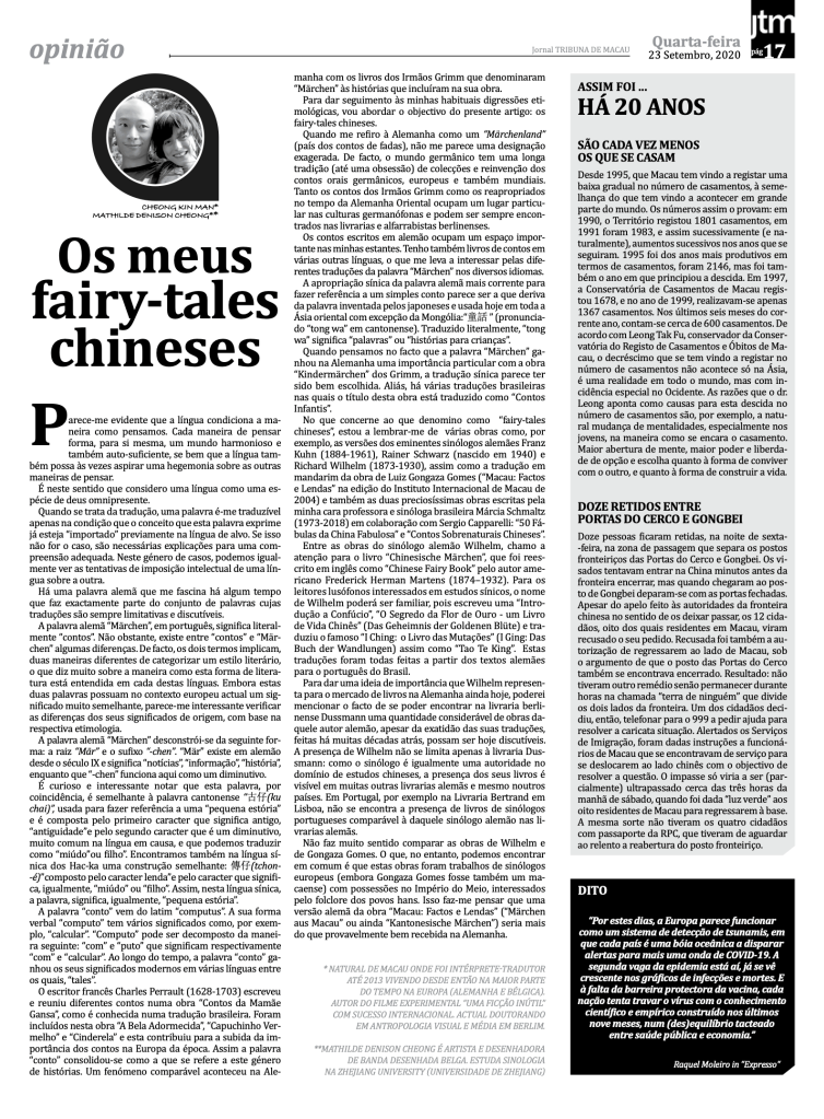 Tām ir arī nozīmīga vieta arī manos grāmatu plauktos. Visbiežāk izmantotais vārds, ko ķīnieši mēdz piesavināties ir “Märchen” (tulkojumā no vācu valodas, pasaka) un, izskatās, tas ir kļuvis arī par aizņēmuma vārdu, kurš tika piesavināts no Japāņu izgudrojuma “童話” (tulkojumā, vārdi vai bērnu stāsti), vārds, kurš tiek izmantots visā austrumāzijā, izņemot Mongolijā. Nav jau nekāds brīnums, vācu vārds “Märchen” pats par sevi ir ieguvis izgudrojuma nozīmi, tāpat kā brāļu Grimmu bērnu pasakas (“Baśnie dla dzieci” tulkojumā no poļu valodas). Par cik tas tiek bieži pārtulkots dažādos Brazīlijas valodas veidos, “Contos Infantis” nozīmē to pašu ko poļu valodā “Baśnie dla dzieci”, tāpēc ir tikai saprotami, ka mēs vēl joprojām ļoti bieži tulkojam šo vārdu uz ķīniešu valodu, “bērnu pasakas”.